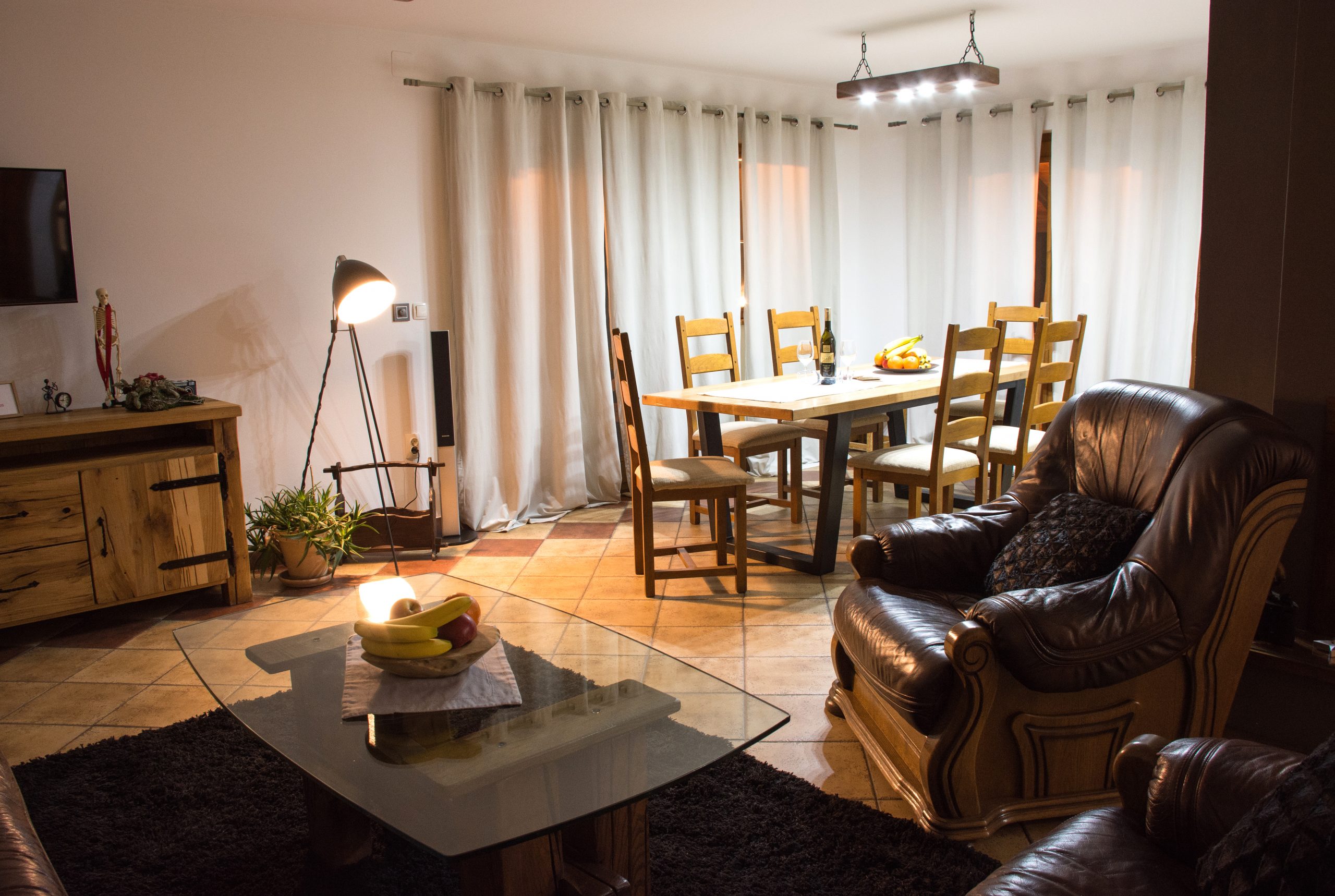 Kuća se sastoji od velike kuhinje s blagovaonicom spojenih s dnevnim boravkom, dvije kupaonice te s jednom sobom s bračnim krevetom u prizemlju. Na katu je velika galerija s četiri kreveta i jedna soba s bračnim krevetom.