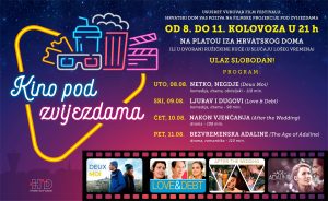 Hrvatski dom Vukovar želi vam ugodne ljetne praznike i poziva vas na četiri dana besplatnih filmskih projekcija, od 8. do 11. kolovoza 2023. u 21 sat, na otvorenom – na platou iza Hrvatskog doma, a u slučaju lošeg vremena u dvorani Ružičkine kuće.